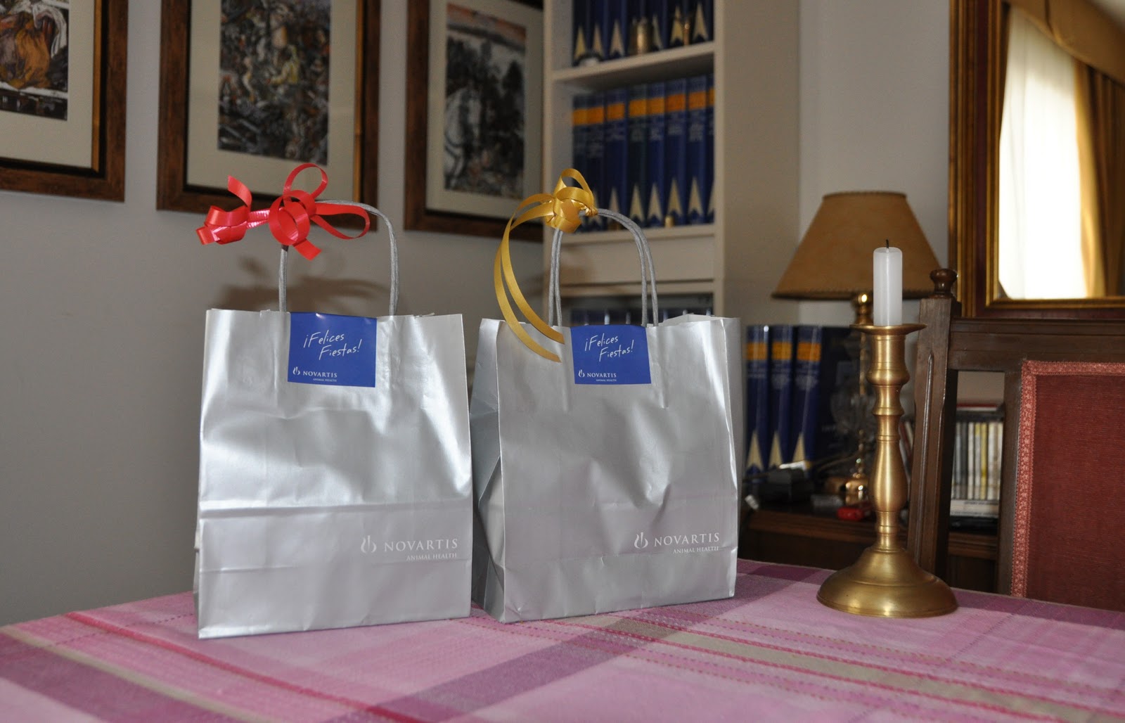 El sábado mamy tenía invitados. A mi me encanta que vengan invitados porque siempre hay alguien que me da algo para picar entre horas. El sábado mamy había asado un roastbeef fabuloso que había comprado a Valentín un día que fue de excursión. Así que el sábado a medio día tomé patata hervida con muchos pedacitos de carne rosa, rosa umhhh. Pero lo mejor fue el regalo que nos han hecho Venan y Susi a los "cacharritos", las gatunas y a mi, porque dice mamy que tengo que tomar pienso de puppys que tiene más proteínas, así que también tomaré lata de puppys:
